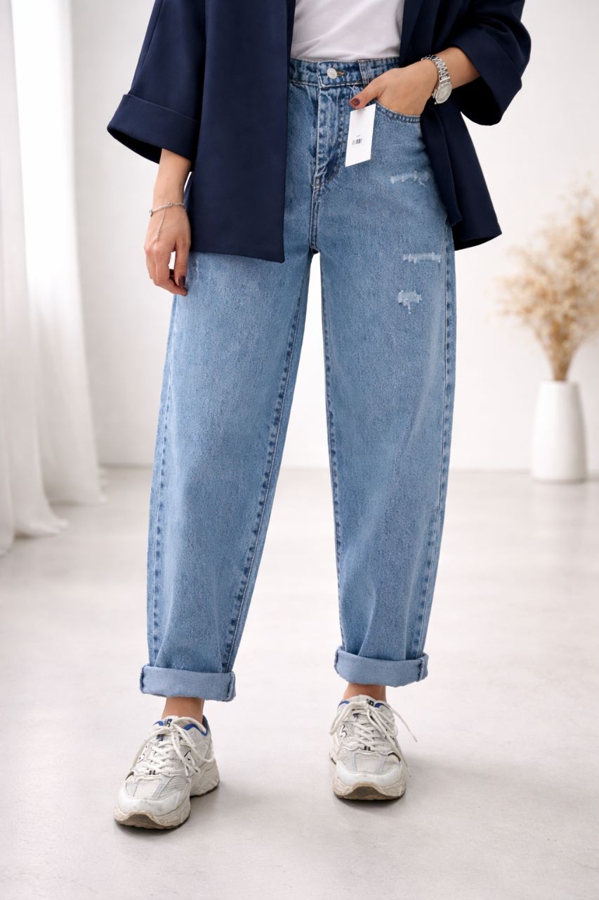شلوار جین زنانه مدل بالونی در دو رنگ آبی وسرمه ای سایز ۳۰ تا ۳۴ کد ۱۳۲۱و۱۳۲۲