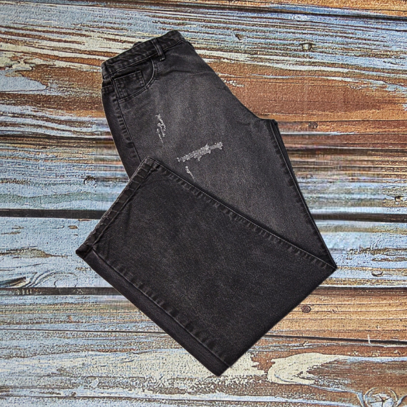 شلوار جین زنانه نیم بگ ذغالی کد(۱۶۰۰)