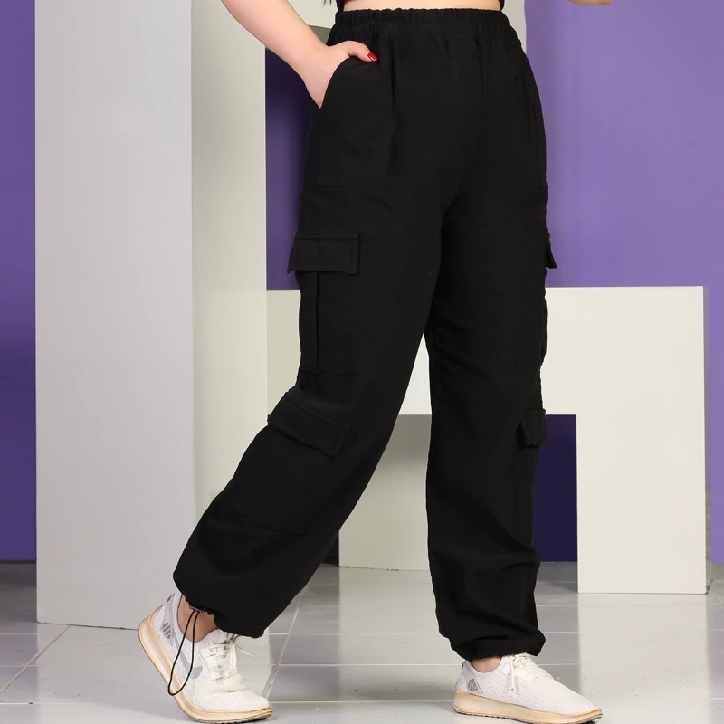 شلوار کارگو کتان کش مشکی کرم سبز دمپا گت دار دو حالته فری سایز مناسب برای سایز 38 تا46