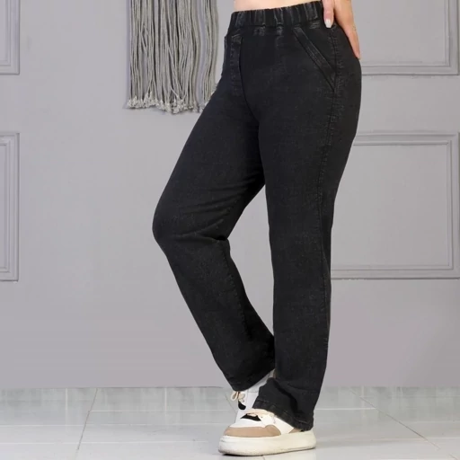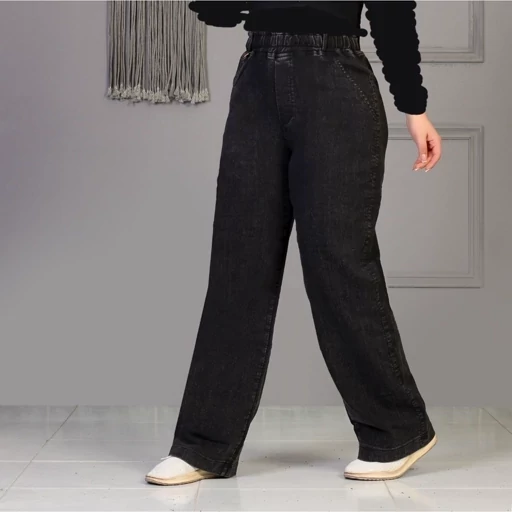 شلوارلی نیم بگ زنانه لی ضخیم رنگ ذغالی سایز 38تا46 قد 100