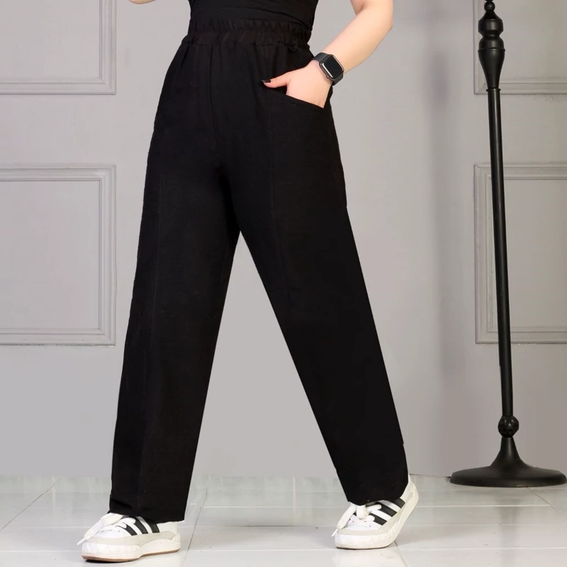 شلوار مام فیت کتان کش بنگال سایز بندی 40 تا 50 رنگبندی مشکی و رنگبندی
