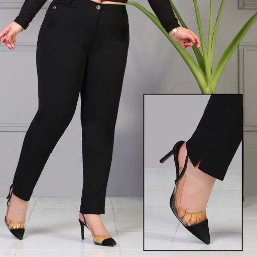 شلوار زنانه مشکی گاباردین قد 90چاکدار راسته سایز 38 تا 46