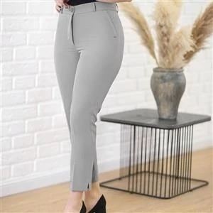 شلوار زنانه مازراتی راسته چاکدار قد 90 طوسی روشن