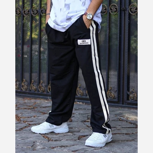 شلوار مردانه نیم بگ مشکی بغل نوار کنفی از سایز L تا 5Xl