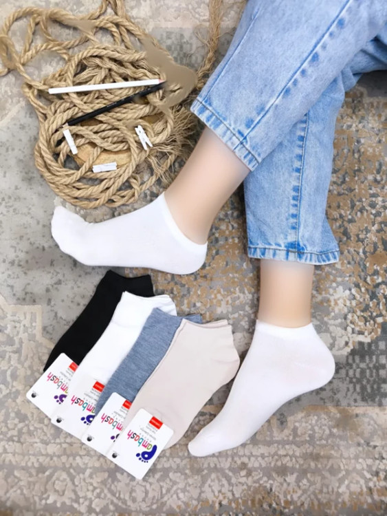 بافته شده از نخ اعلا با کیفیت نرم ، ریز بافت و با دوام ؛ بافته شده با دستگاه های کامپیوتری سیلندر 200 مناسب برای سایز های 36 الی 41 برای استفاده در همه فصول سال بادوام و شیک در 4 رنگ مشکی، سفید , آبی , طوسی