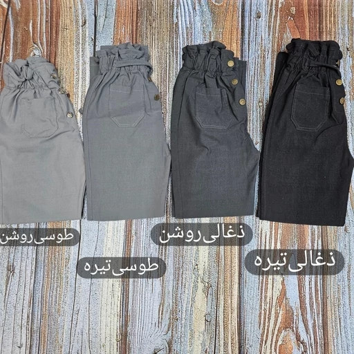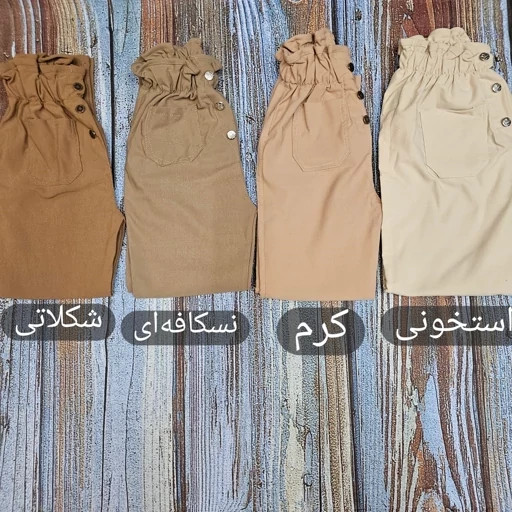 رنگ مشکی ،سدری ،ارتشی ، زیتونی ، کرم , نسکافه ای ، شکلاتی ، ذغالی روشن ، خردلی ، طوسی روشن، نخودی
