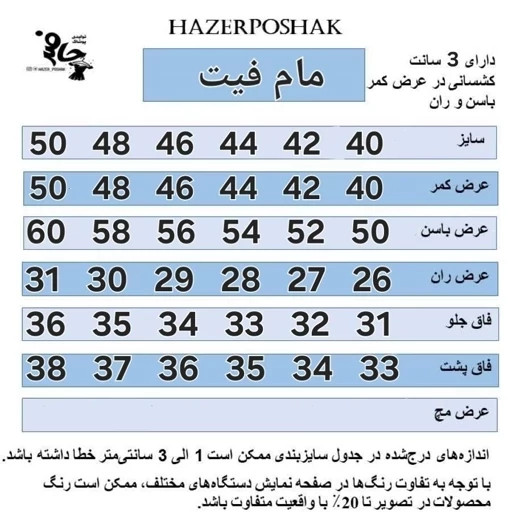 سایز 40،42، 44 ،46 ، 48 ، 50