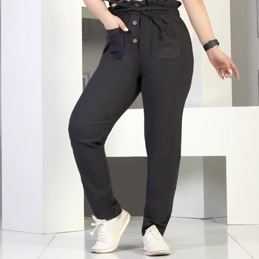 شلوار مام فیت کتان کش بنگال سایز بندی 40 تا 50 رنگبندی مشکی و رنگبندی