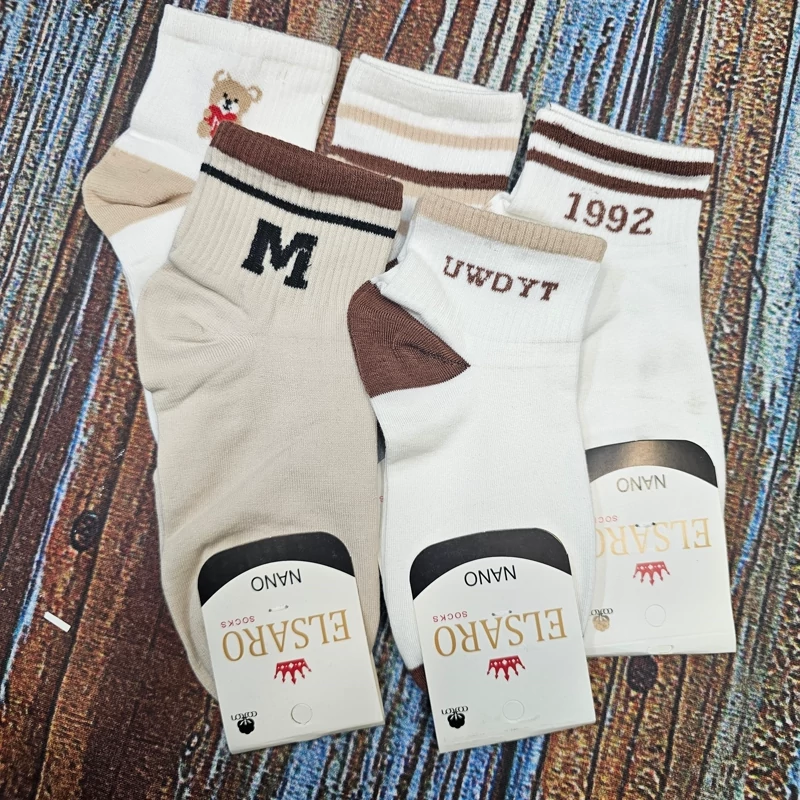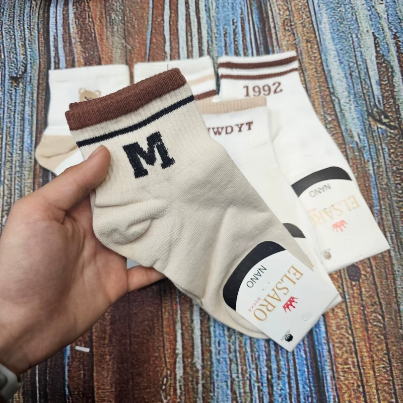 جوراب زنانه نخ پنبه نیم ساق رنگ های نود کد(046)