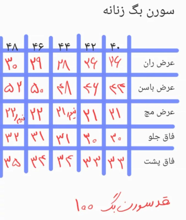 سایزبندی 42 تا 50 قد 100 پارچه سورن درجه یک