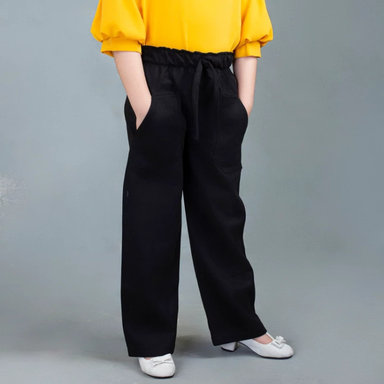 شلوار دخترانه مخمل سوییت مشکی مناسب 6 تا 14 سال نیم بگ