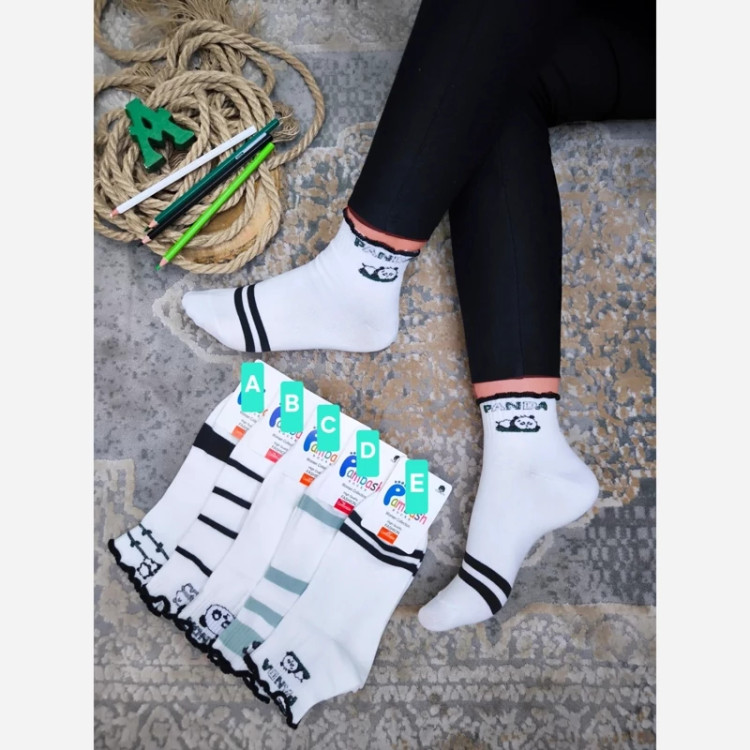 بافته شده از نخ ایرانی با کیفیت رسو پنجه گیری شده جهت پاهای حساس نرم ، ریز بافت و با دوام ؛ بافته شده با دستگاه های کامپیوتری سیلندر 200 مناسب برای سایز های 36 الی 41 برای استفاده در همه فصول سال بادوام و شیک در 5 طرح مختلف