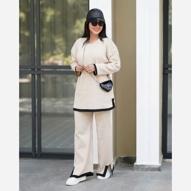 ست بافت چاکدار بافت گرم بالا فری سایز : 38تا44 قد جلو تونیک 74 ، قد پشت تونیک 74 ، قد شلوار 100