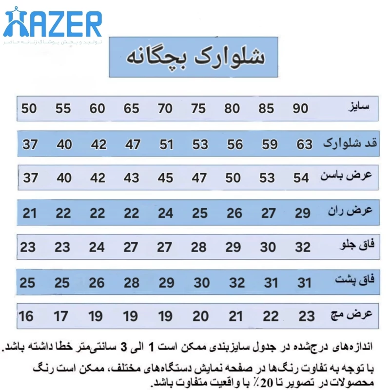 جدول سایزبندی اسلاید اخر