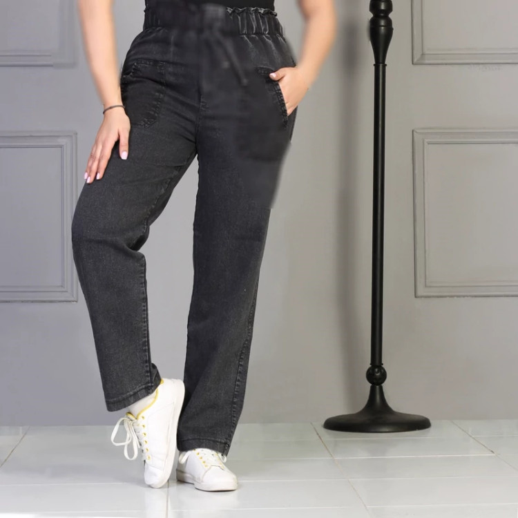 شلوارلی نیم بگ زنانه لی ضخیم رنگ ذغالی سایز 38تا46 قد 100