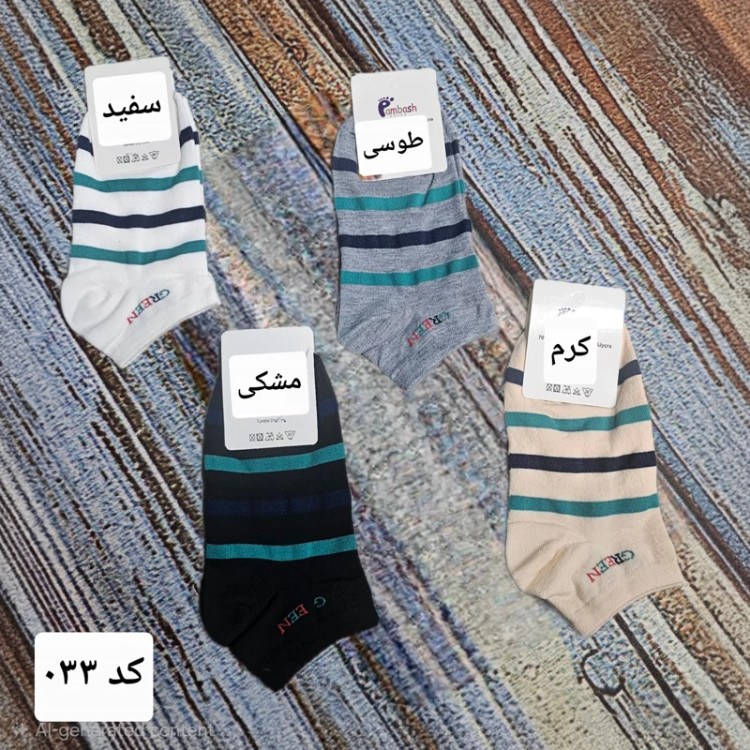 جوراب مچی زنانه 4 رنگ طرح GREEN راه راه درشت پام باش کد (033)