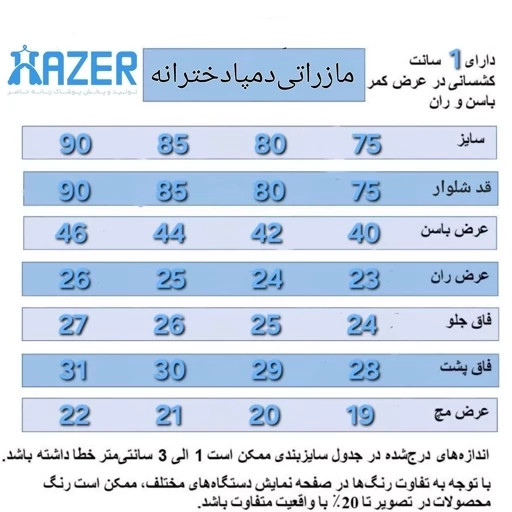 پارچه مازراتی رجال درجه یک کمر پشت کش و جلو زیپ و دکمه در چهار سایز 75 80 85 90 مشکی دمپا گشاد جدول راهنمای سایزبندی اسلاید آخر قرار داده شده