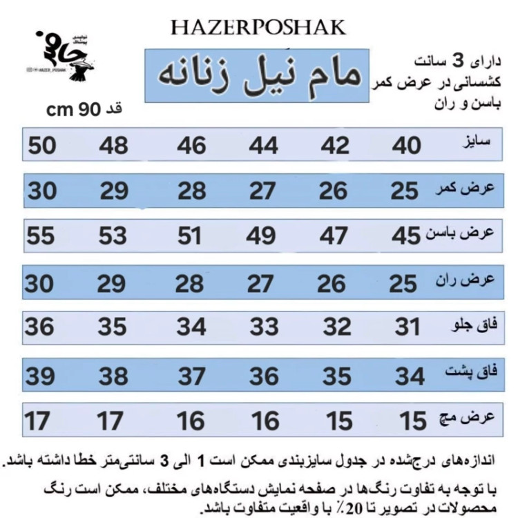 جدول سایزبندی اسلاید آخر قرار داده شده هست.