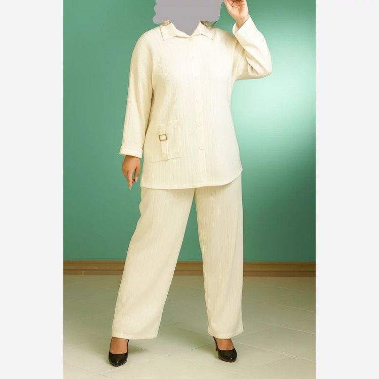 ست تونیک شلوار آیوا مناسب سایز 38 تا 46 رنگ کرم و استخونی