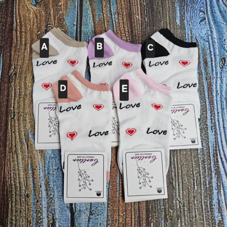 جوراب زنانه مچی نخ پنبه طرح love در پنج رنگ مختلف کد (066)