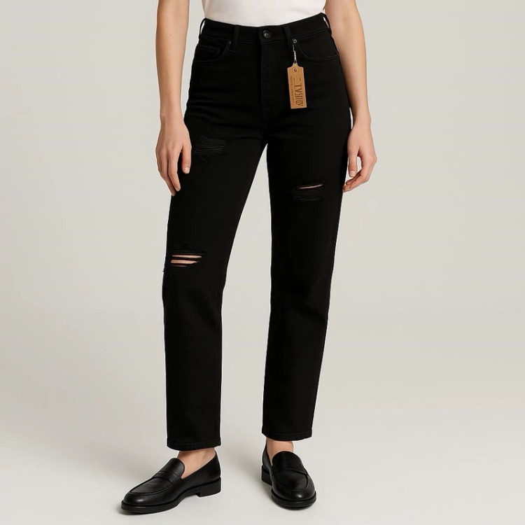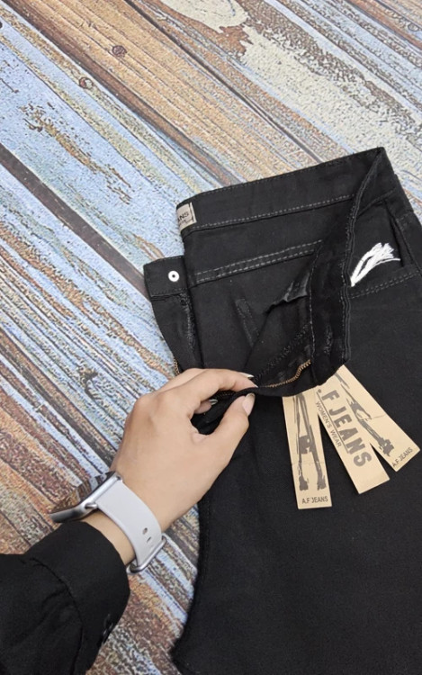 شلوار لی نیم بگ زنانه مشکی زاپ دار