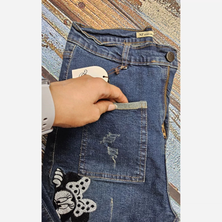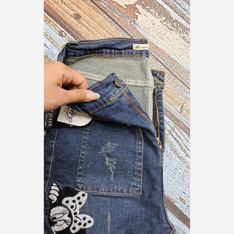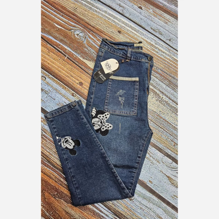 شلوار لی جذب زنانه گلدوزی میکی موس