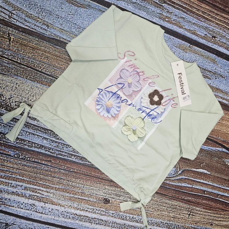 تیشرت کراپ دخترانه چاپ گل در چهار رنگ پرفروش بنفش و سدری و صورتی و سفید کد(۸۸۱۲)