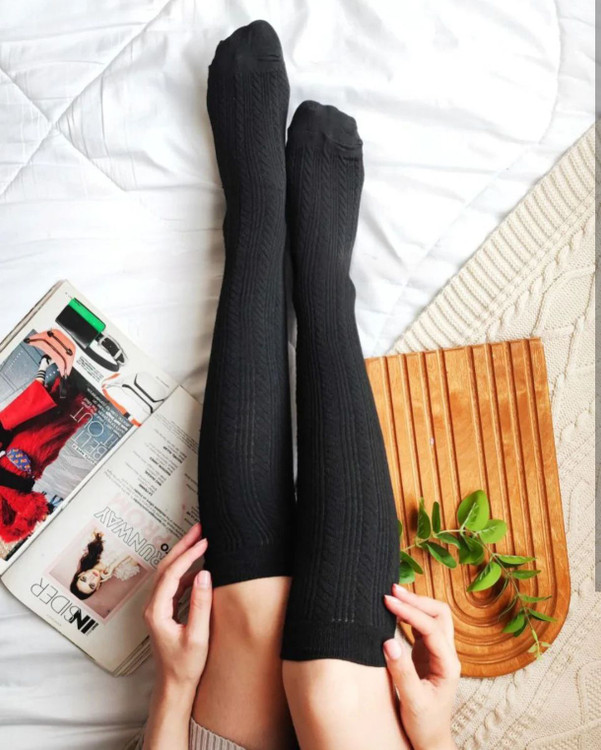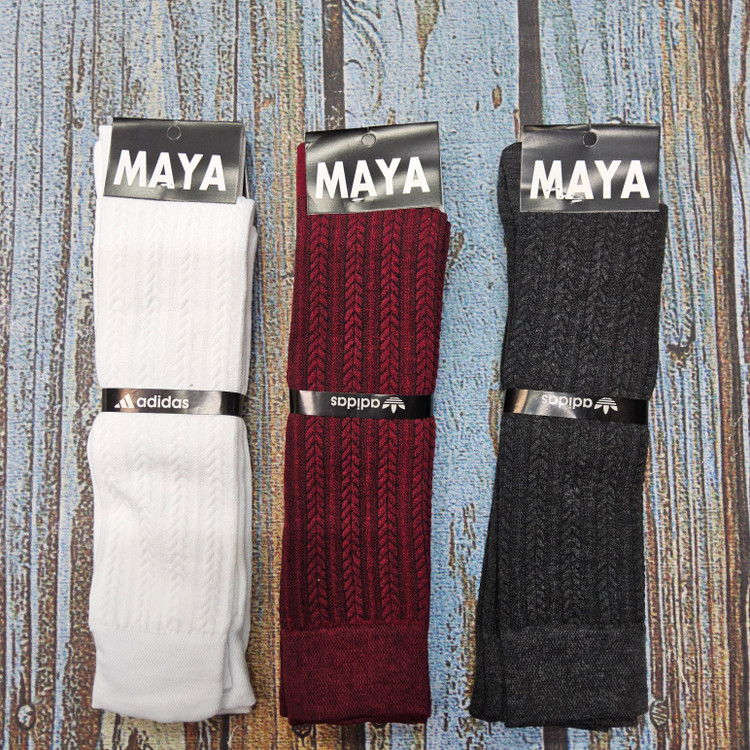 جوراب زنانه سه ربع زیرزانو پنبه گندمی در سه رنگ سفید، زرشکی، ذغالی ، سرمه ای کد 116