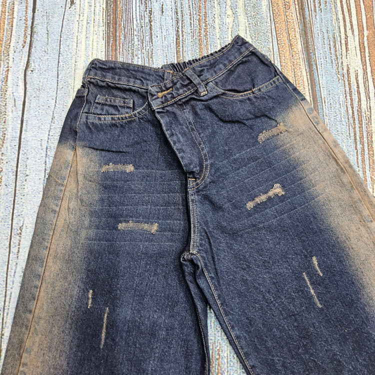 واید لگ جین زنانه سرمه ای سنگشور تینتی صورتی کد ۱۵۸۱