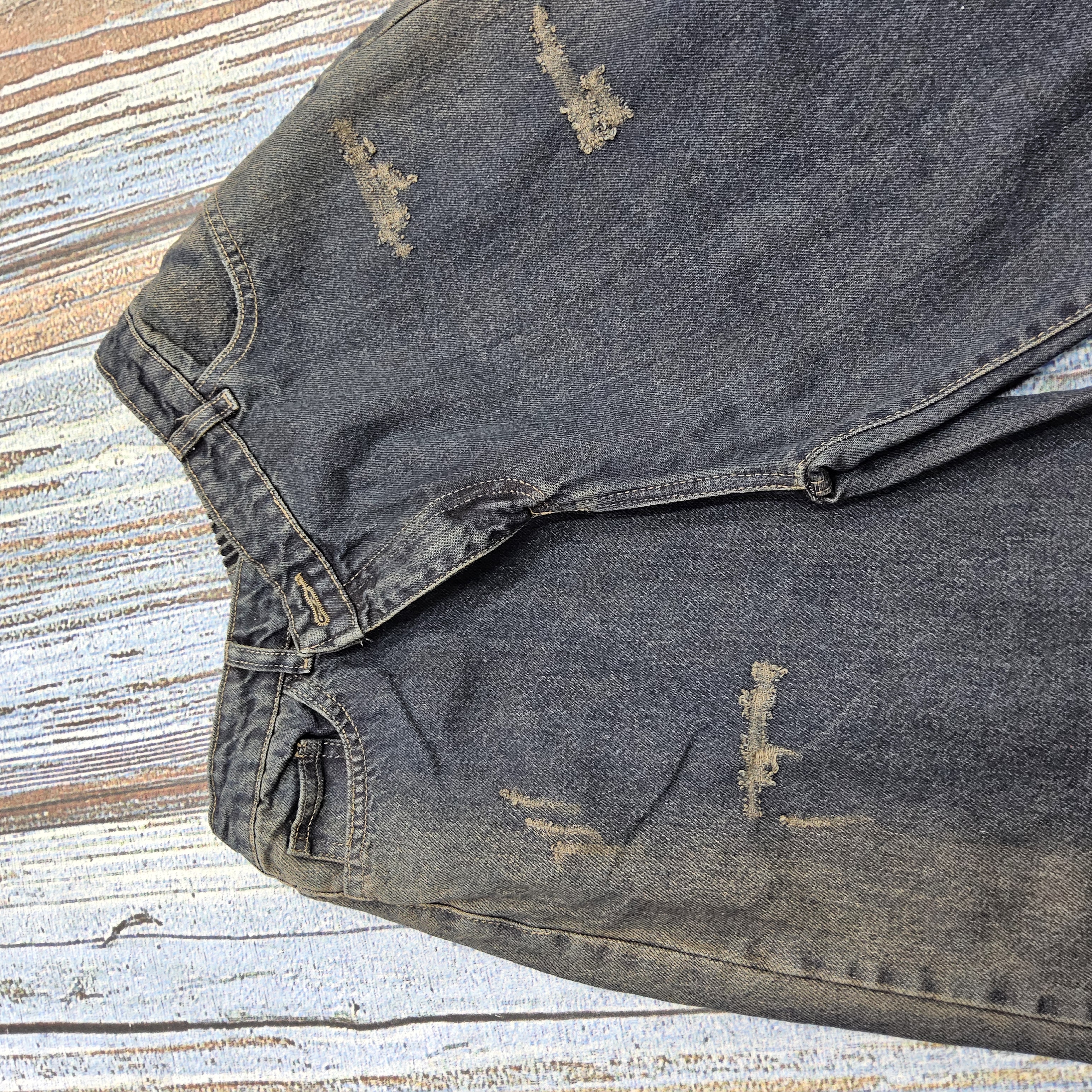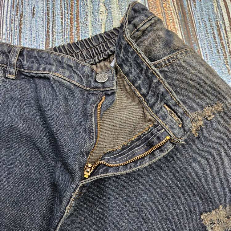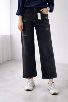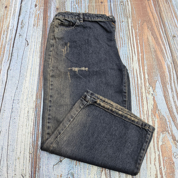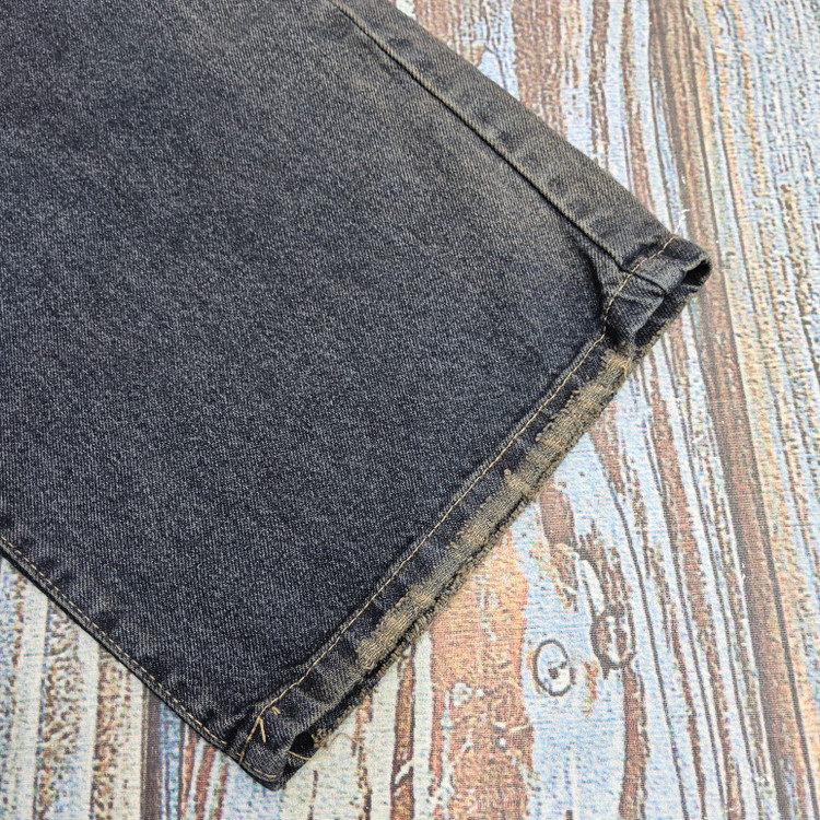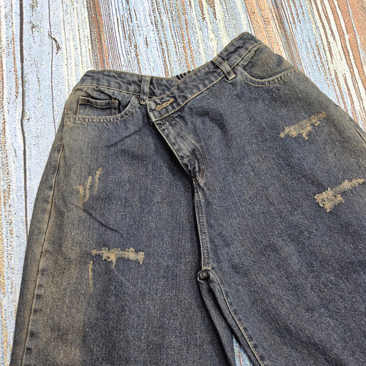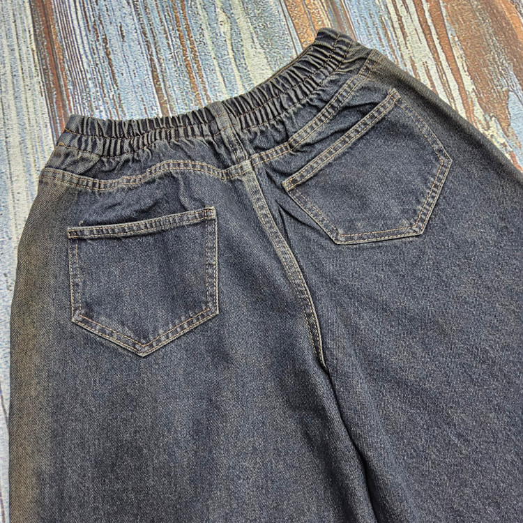 شلوار واید لگ جین زنانه سرمه ای سنگشور تینتی زرد کد ۱۴۰۳