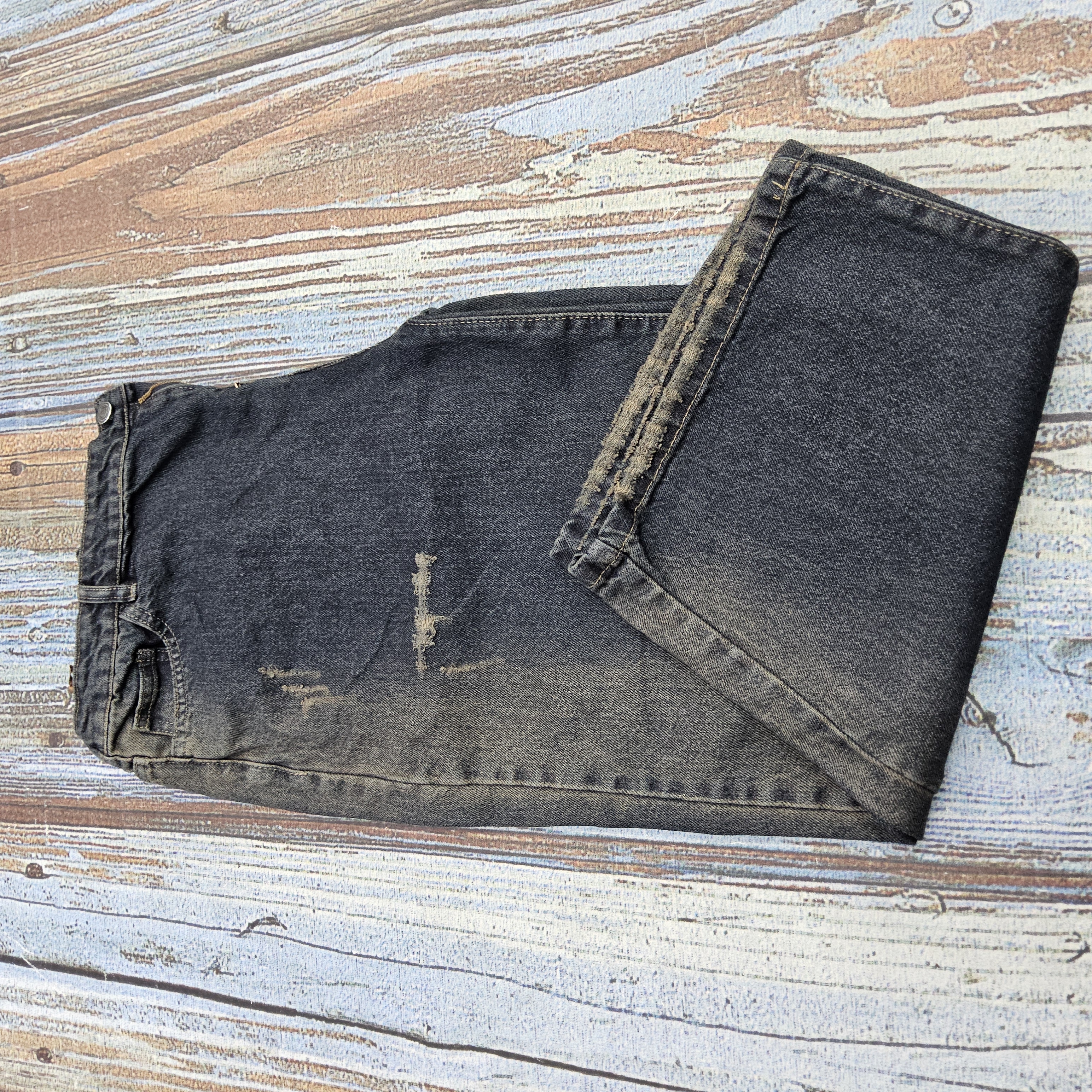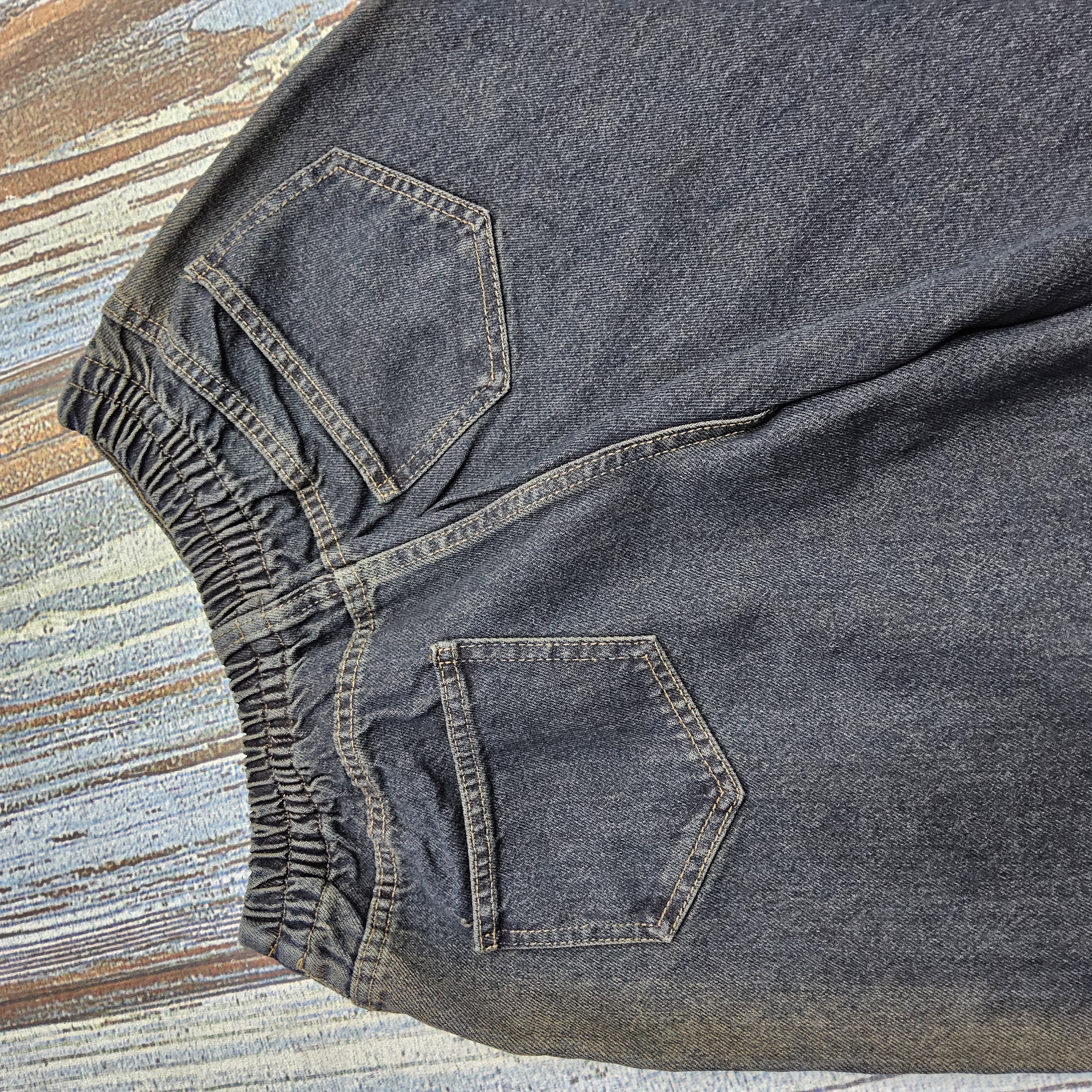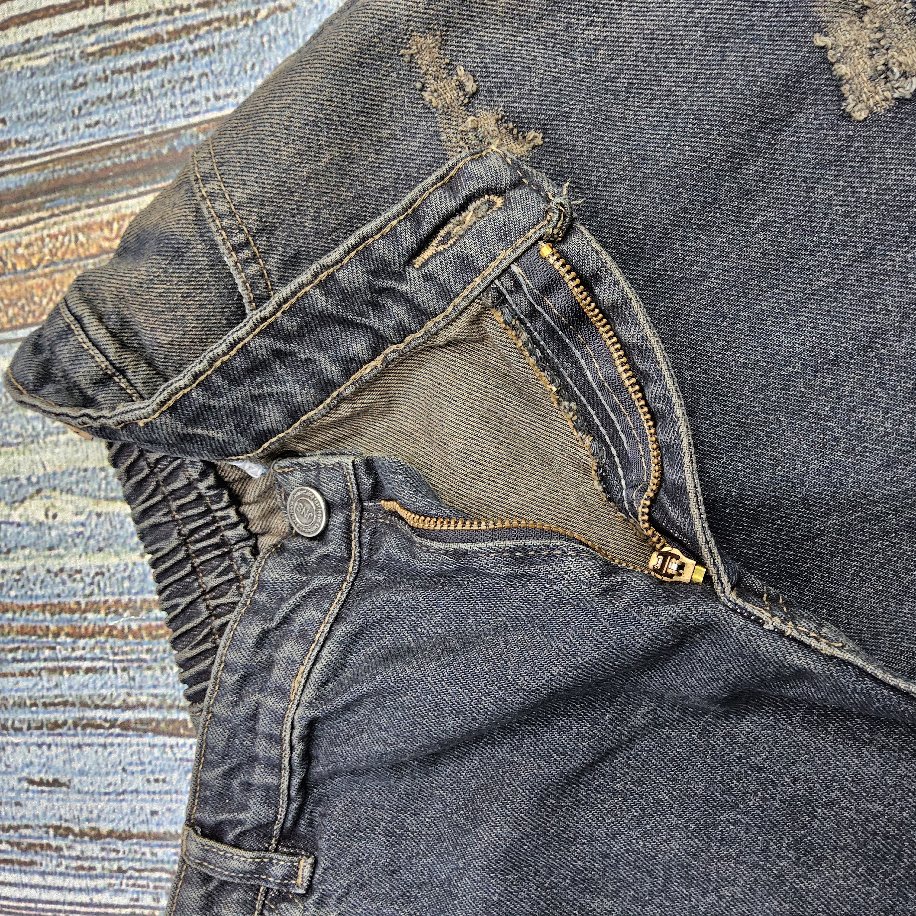 شلوار واید لگ جین زنانه سرمه ای سنگشور تینتی زرد کد ۱۴۰۳